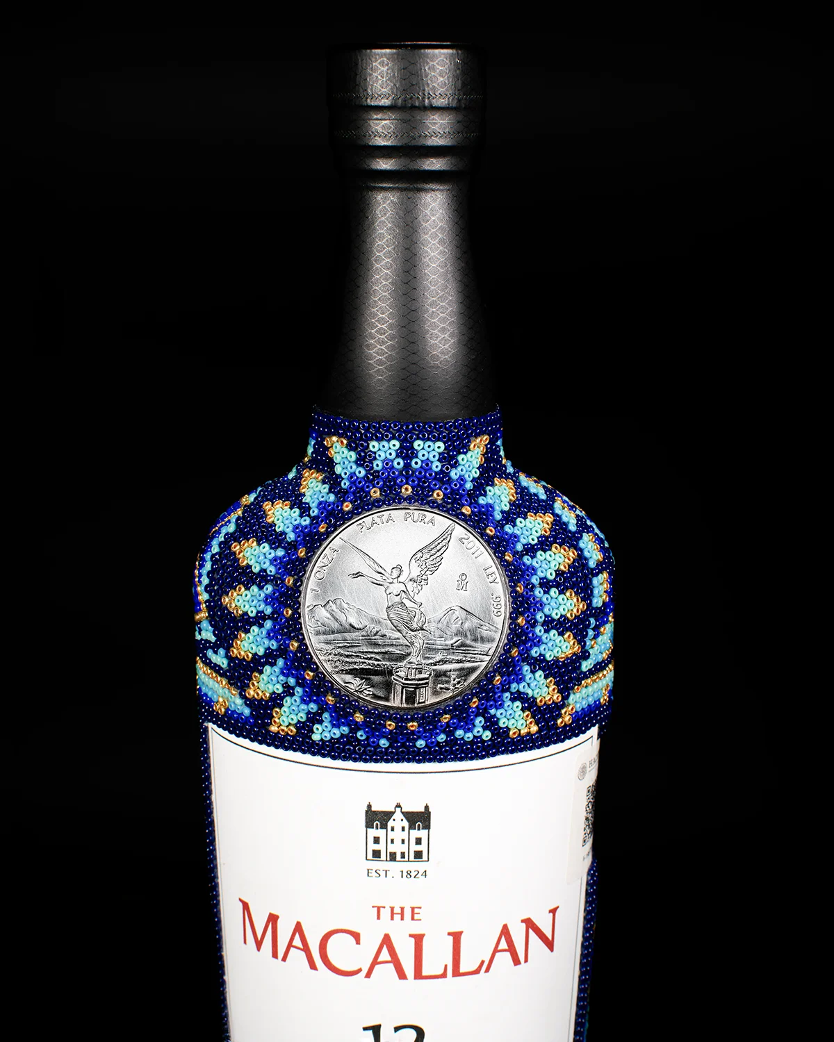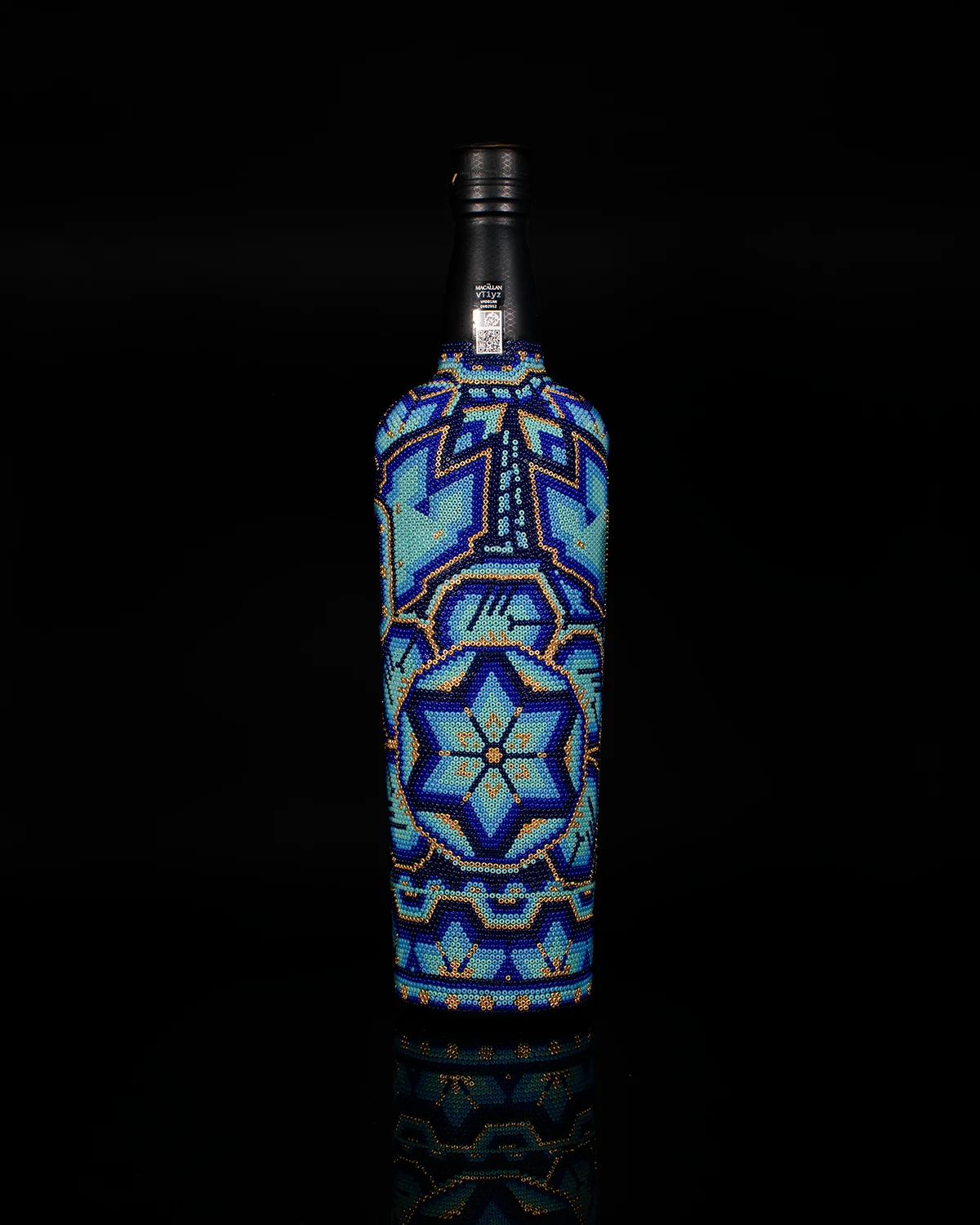 La intervención artística wixárika se realiza mediante la incrustación manual de cuentas de vidrio, una técnica tradicional que requiere precisión, paciencia y profundo conocimiento simbólico. Cada cuenta es colocada individualmente para formar patrones que representan elementos de la naturaleza, la espiritualidad y la cosmovisión wixárika. Este proceso artesanal da como resultado piezas únicas, donde el color, la textura y el detalle convierten cada objeto en una obra irrepetible. Las ligeras variaciones en el diseño son parte de su autenticidad y reflejan el valor del trabajo hecho a mano.