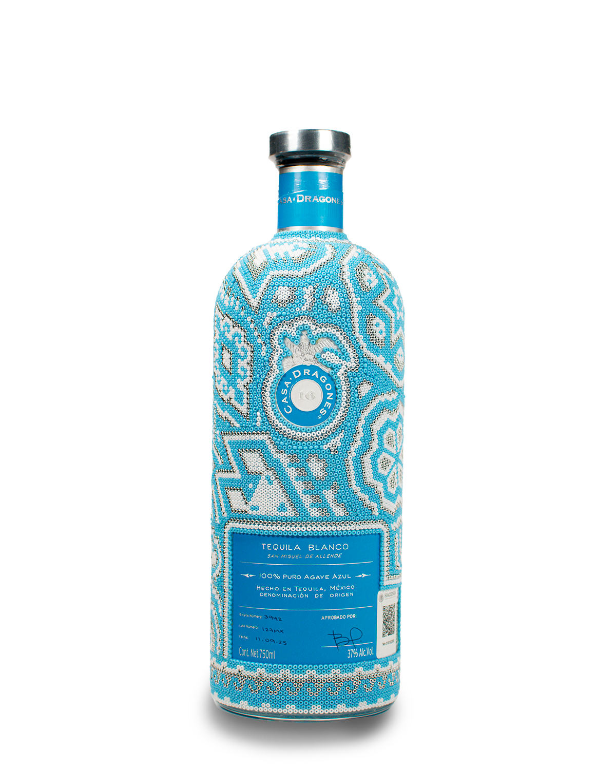 Casa Dragones Blanco en una version artística interactiva que incluye Arte Wixárika original y una medalla dólar giratoria incrustada al frente.