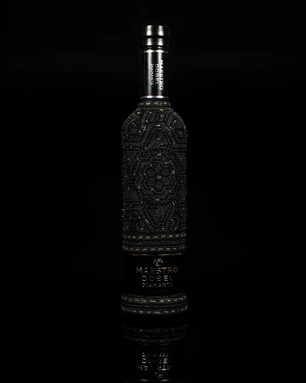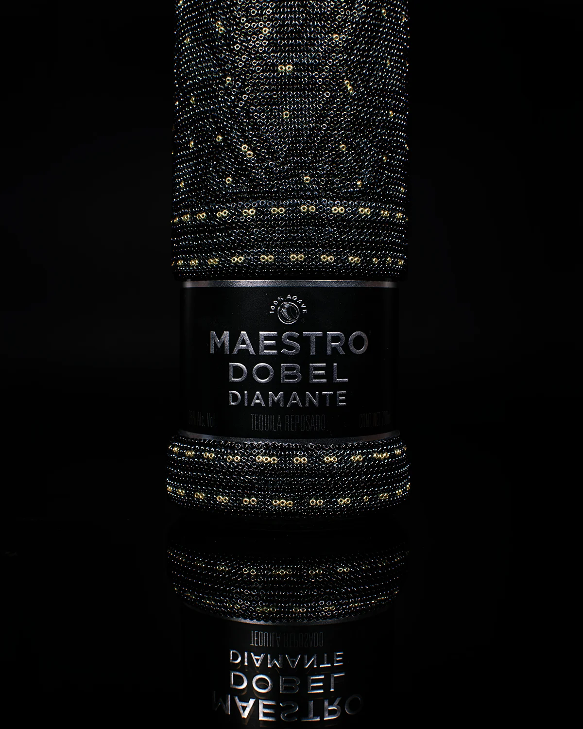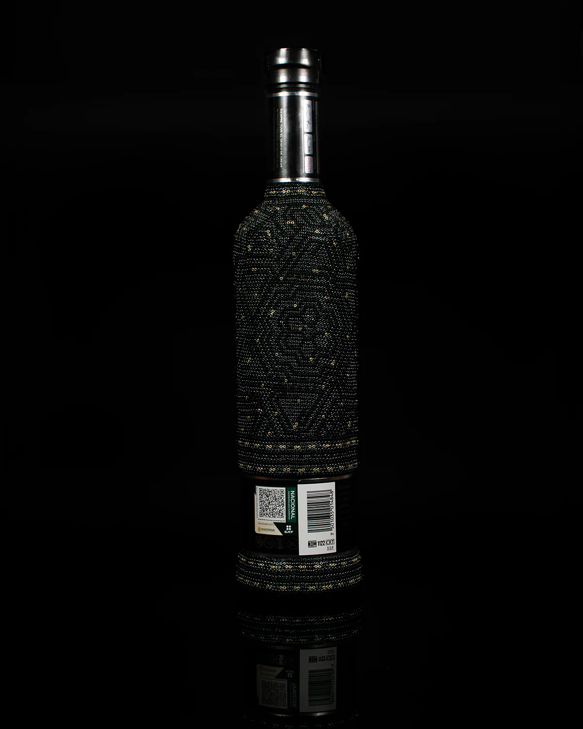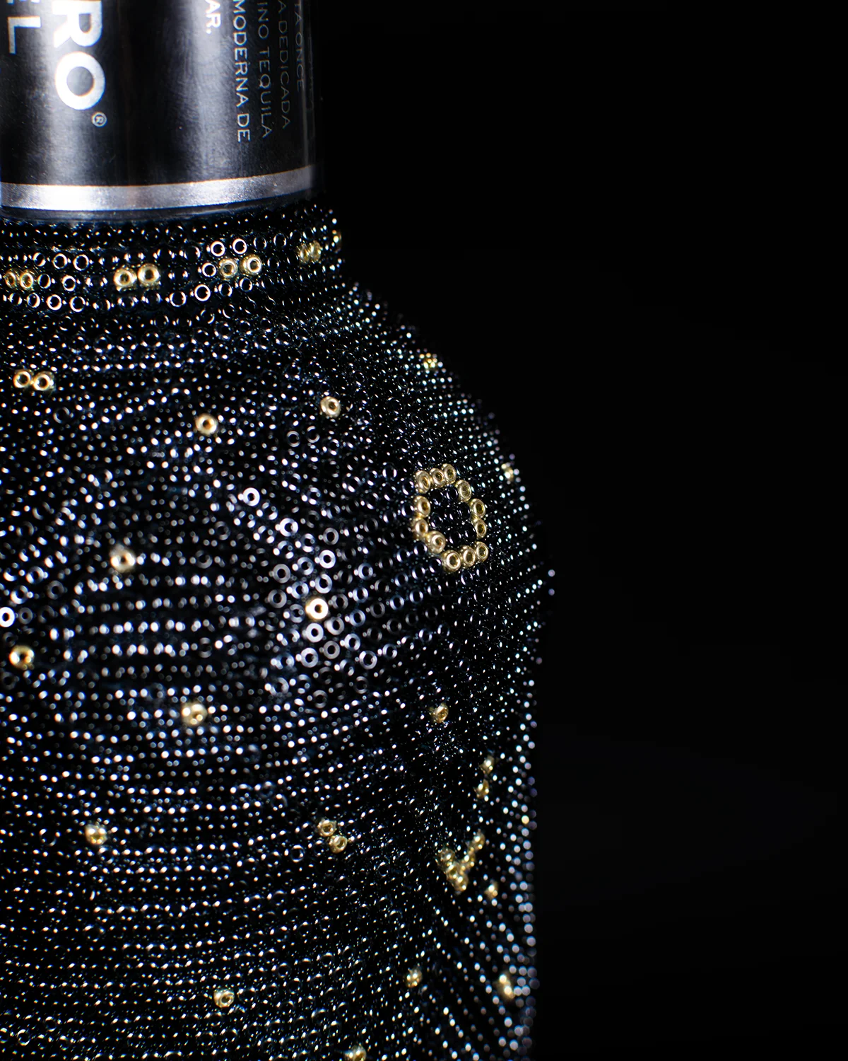 El bestseller de la casa Maestro Dobel, intervenido durante más de 8 horas de trabajo usando más de 8,000 cuentas de vidrio puestas una a una con aguja.